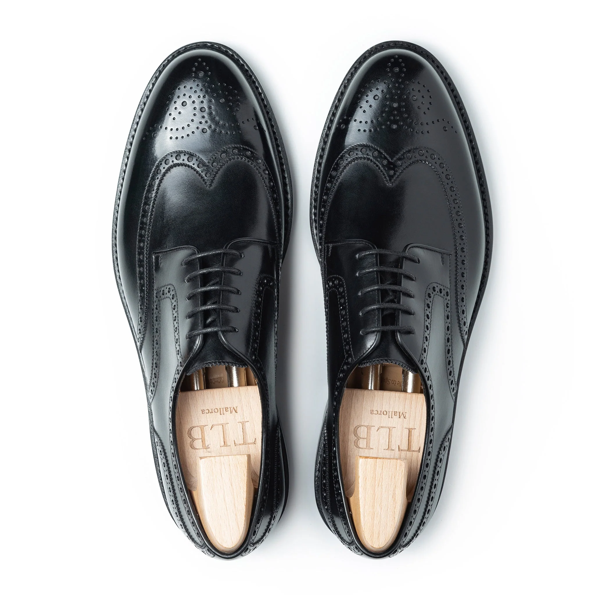 A classic country style Derby shoe with wing tip design and punching details. Made in boxcalf black leather, calf lining with vegetable tanned leather insoles and finished with VIBRAM rubber sole together with storm welt that offer a dress casual look.