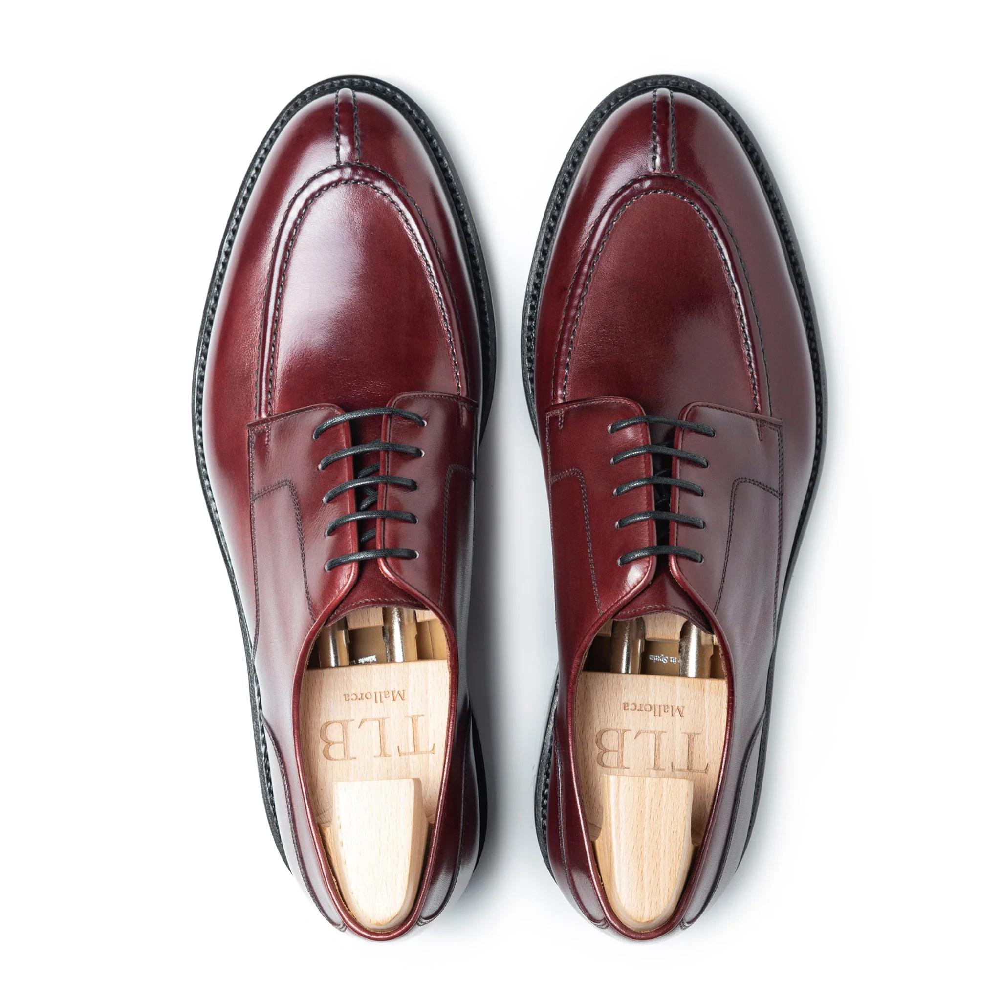 A 5 eyelet split toe derby made with Vegano leather and Burgundy color, calf lining and vegetable tanned leather insoles and finished with VIBRAM rubber soles together with Storm welt that offer a dress casual look.