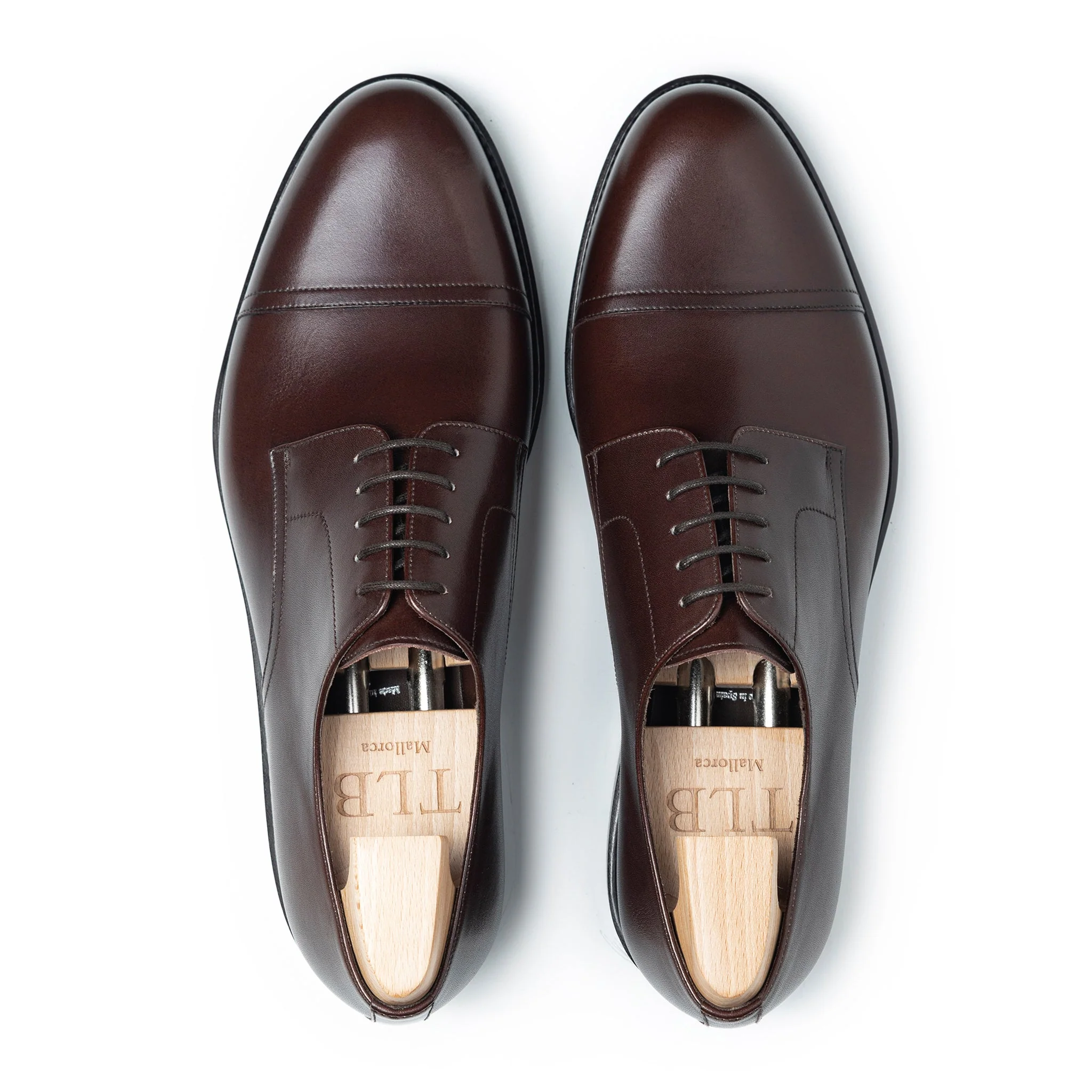 Straight cap toe derby made in dark brown vegano leather, calf lining with vegetable tanned leather insoles finished with VIBRAM rubber sole.